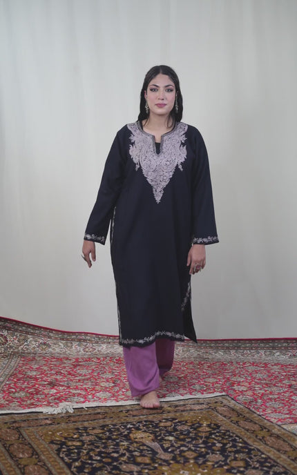 Kashmiri Pastel Aari Work Phiran - Black | Rezkaar
