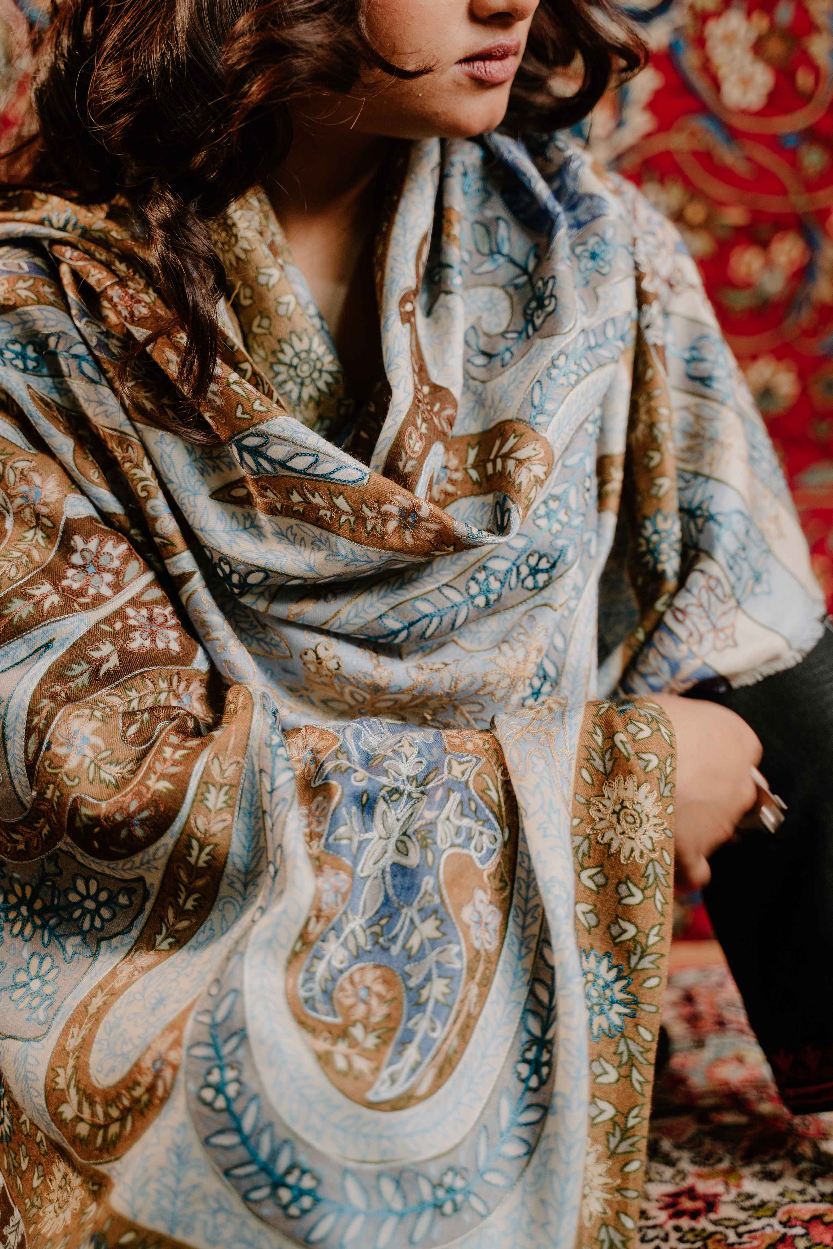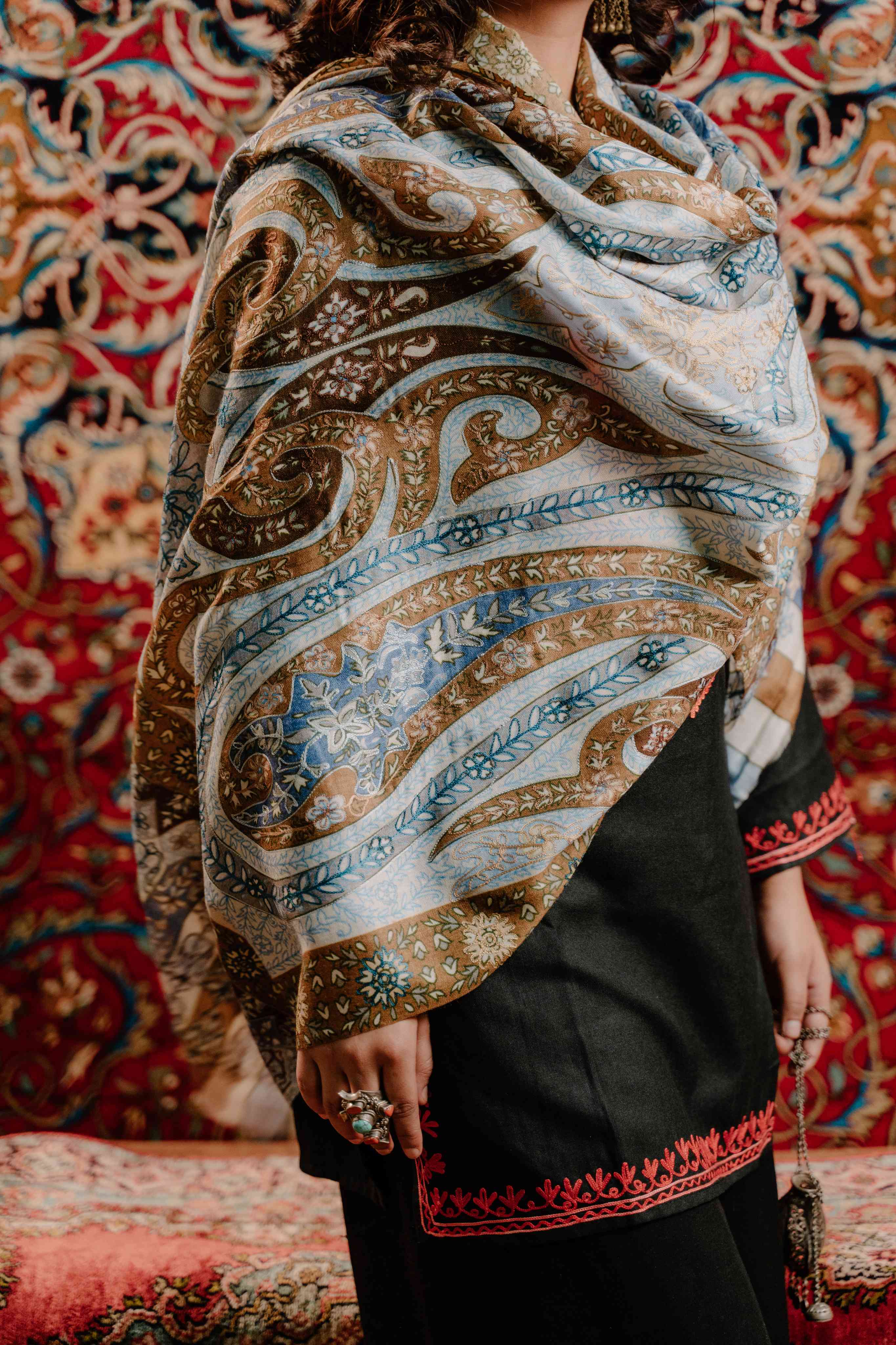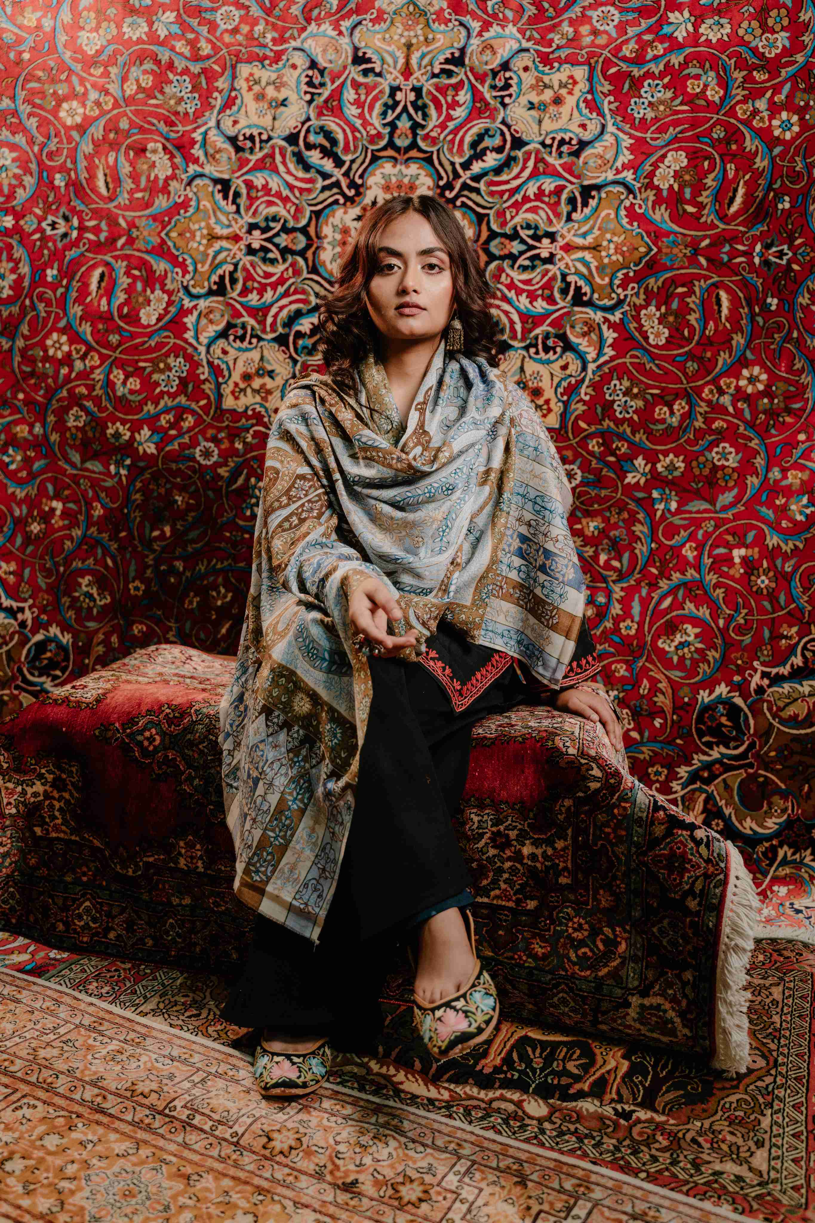 Wrap yourself in luxury and elegance with our KALAMKARI SOZNI WORK PASHMINA SHAWL. Handcrafted with intricate embroidery, this shawl is the perfect addition to any outfit. The soft combination of GREY and BROWN adds a touch of sophistication. Feel confident and stylish while staying warm.