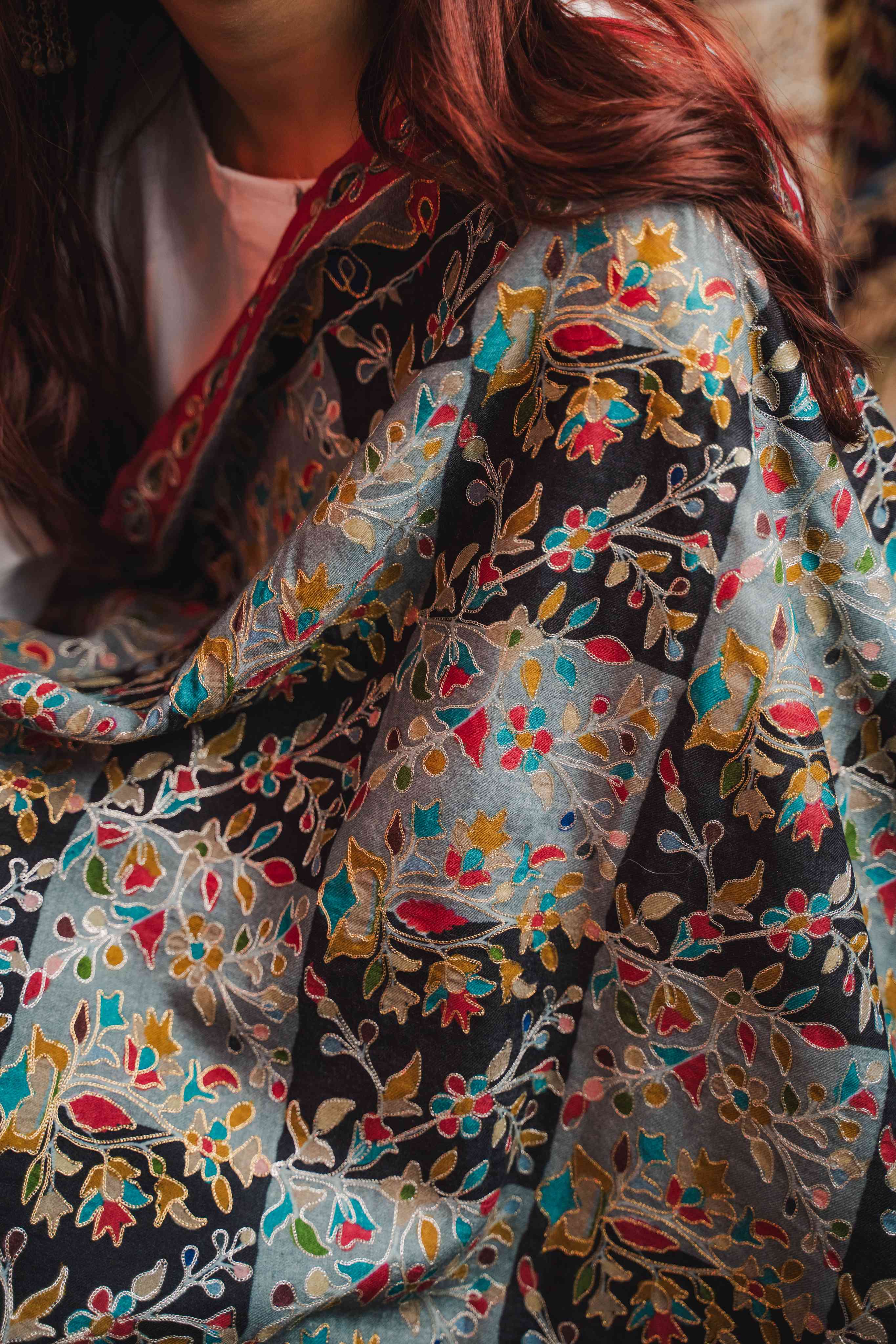 Kashmiri Kalamkari Shawl - Black Hamdan | Zari Outline