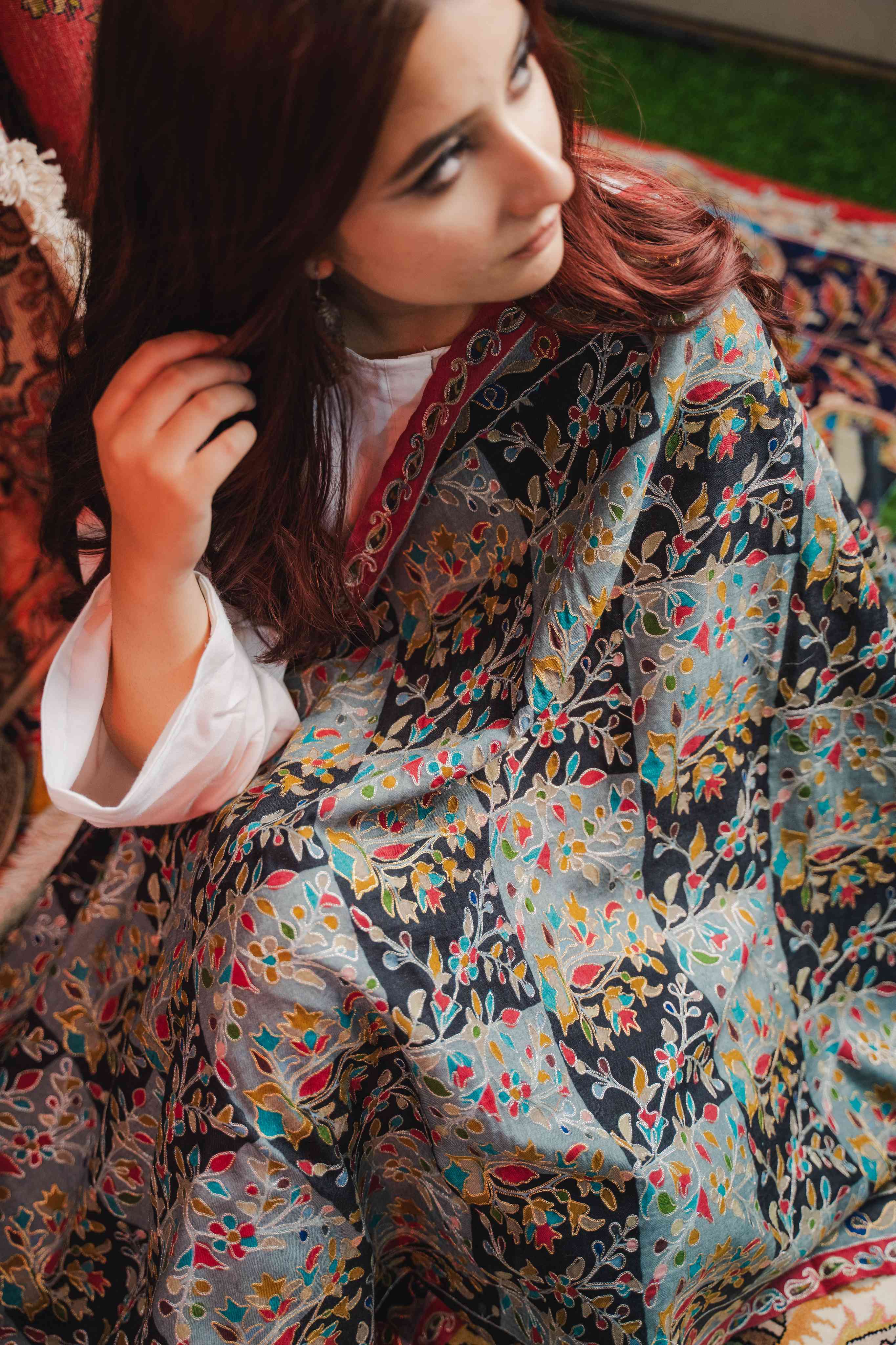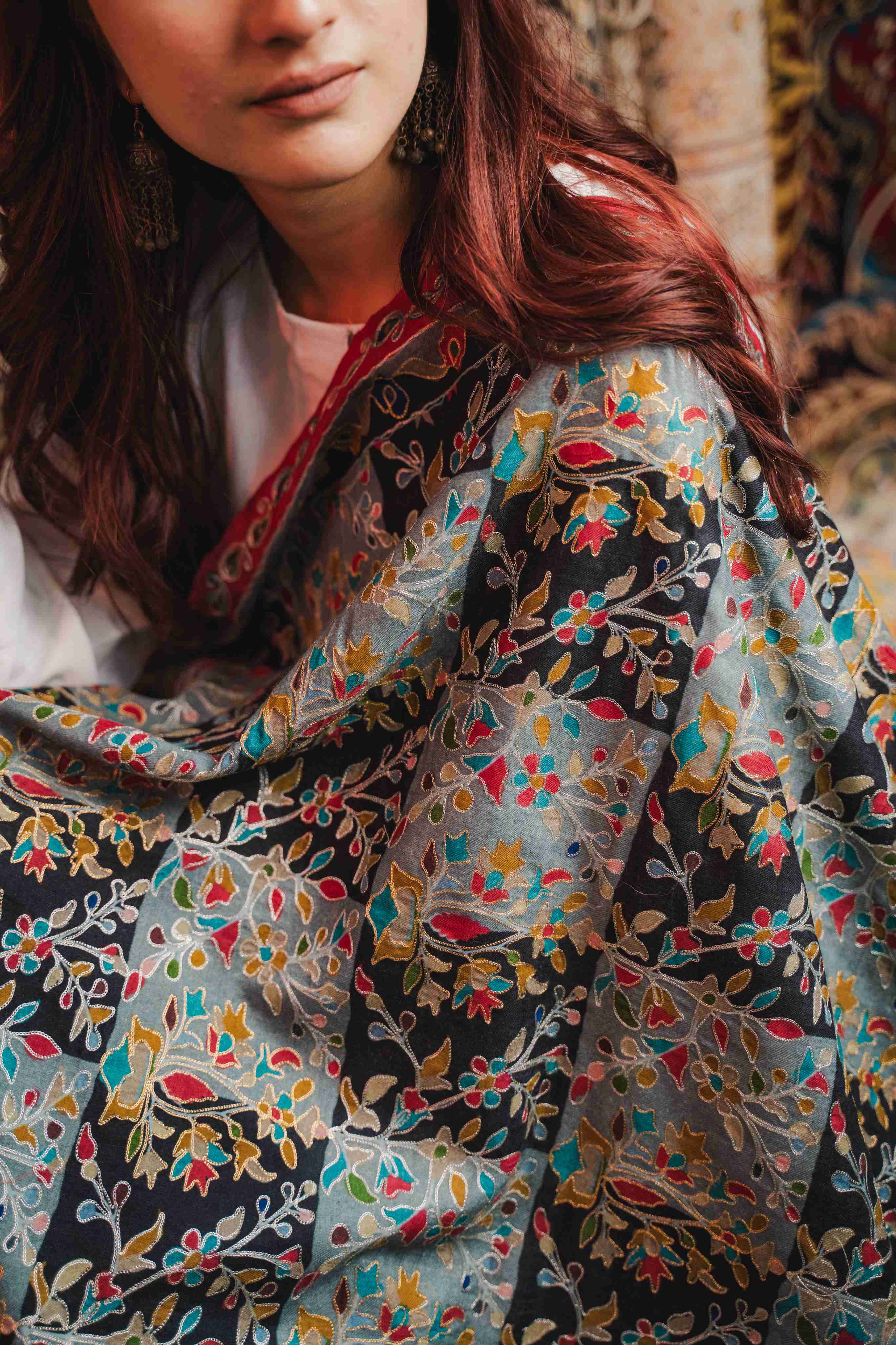 Experience unmatched softness with the Zari Kalamkari Hamdan Designer Shawl, meticulously crafted from super fine wool for exceptional warmth and comfort. Its intricate geometric patterns blend traditional Kalamkari artistry with contemporary elegance, making it a versatile accessory that enhances any outfit. Ideal for both special occasions and daily wear, this shawl combines timeless craftsmanship with luxurious style to keep you cozy and sophisticated throughout the seasons.