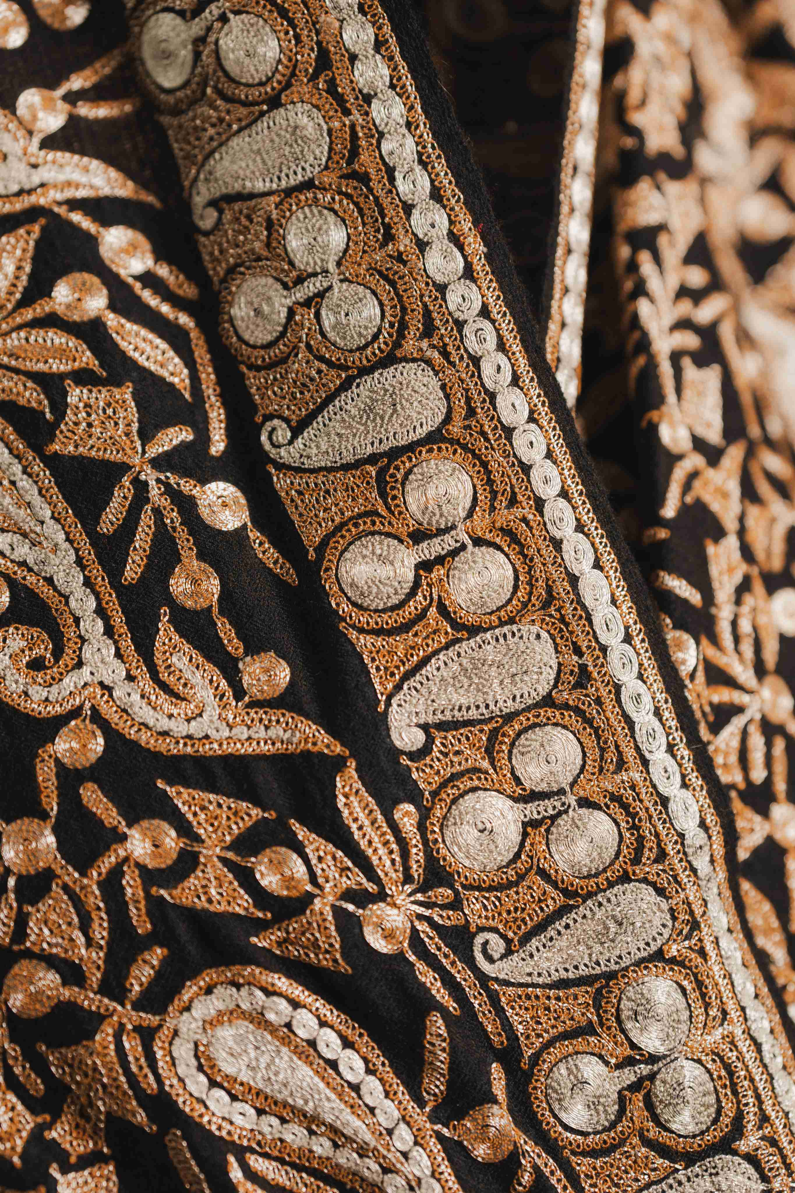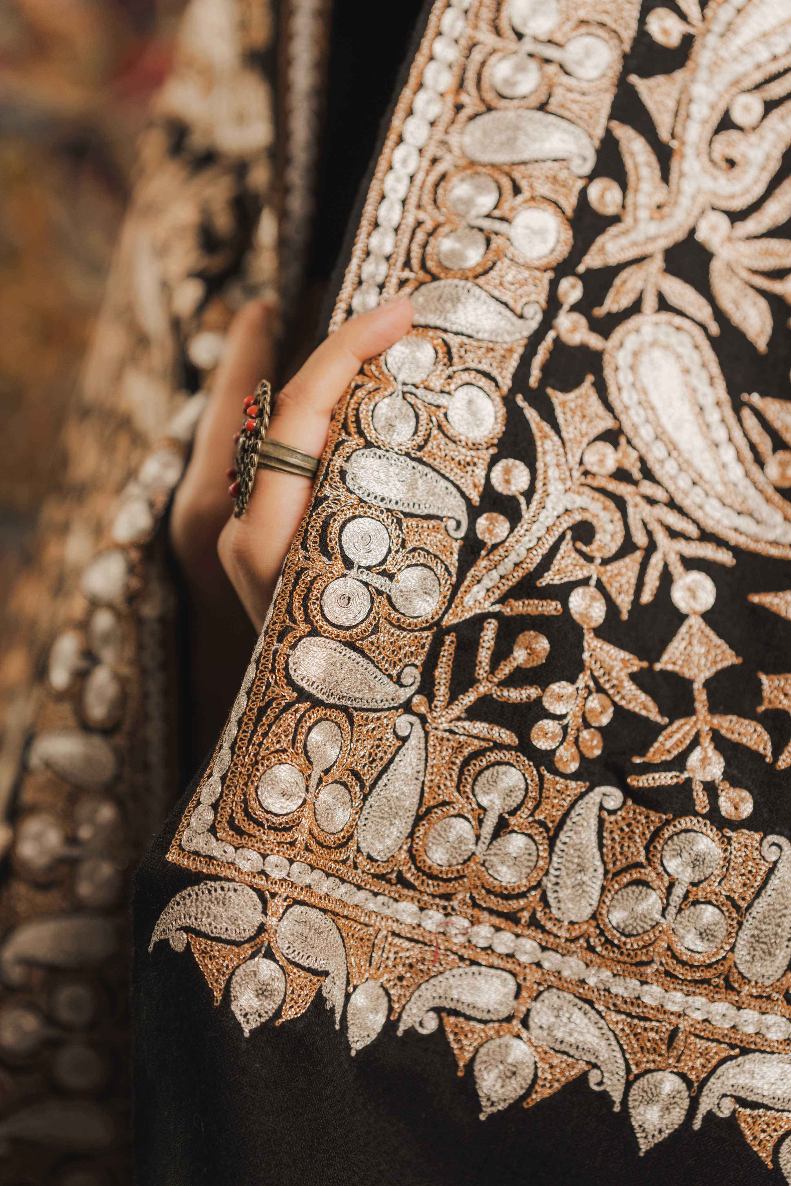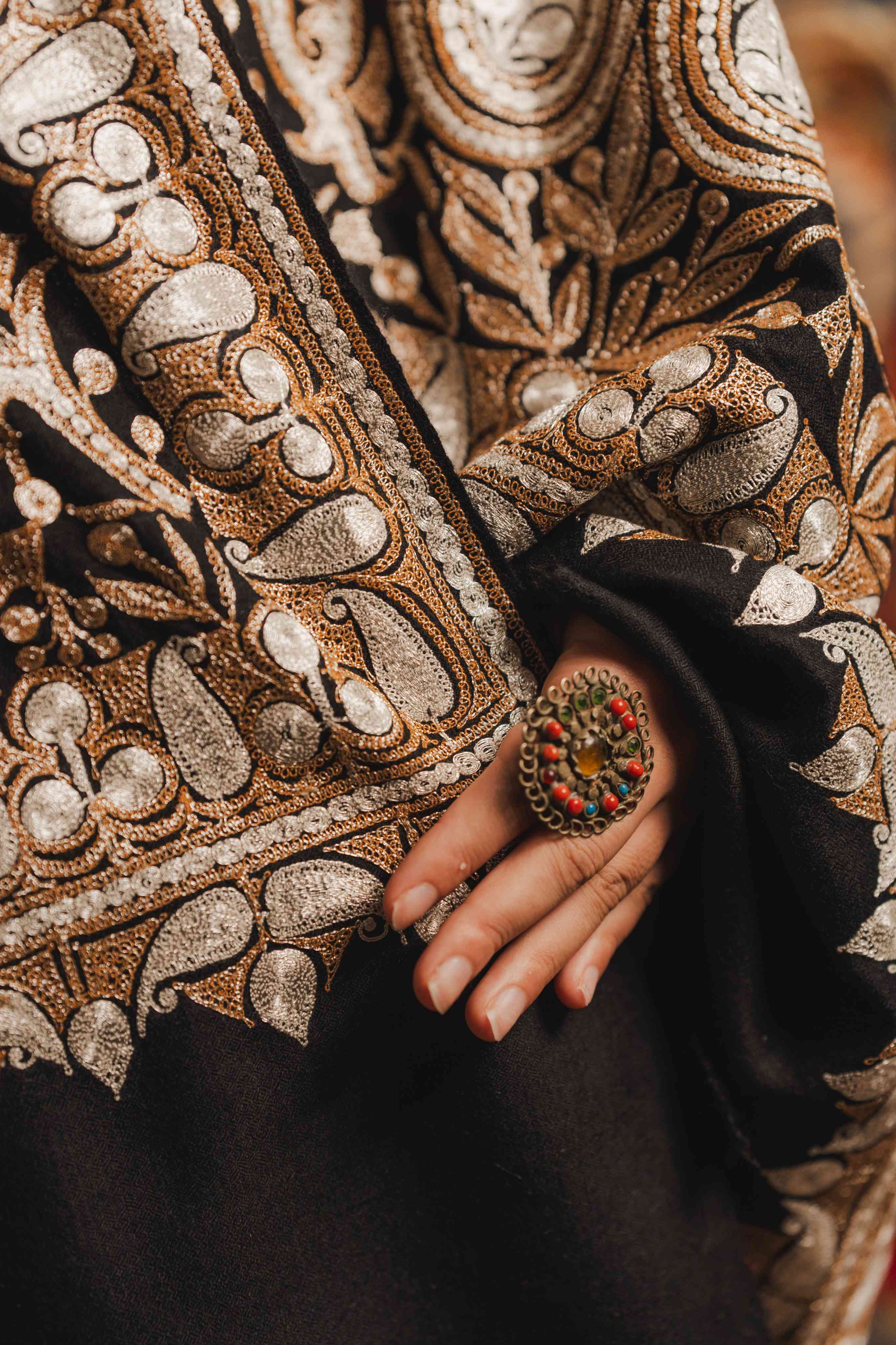 Kashmiri Tilla Embroidery Shawl - Black | Pashmina