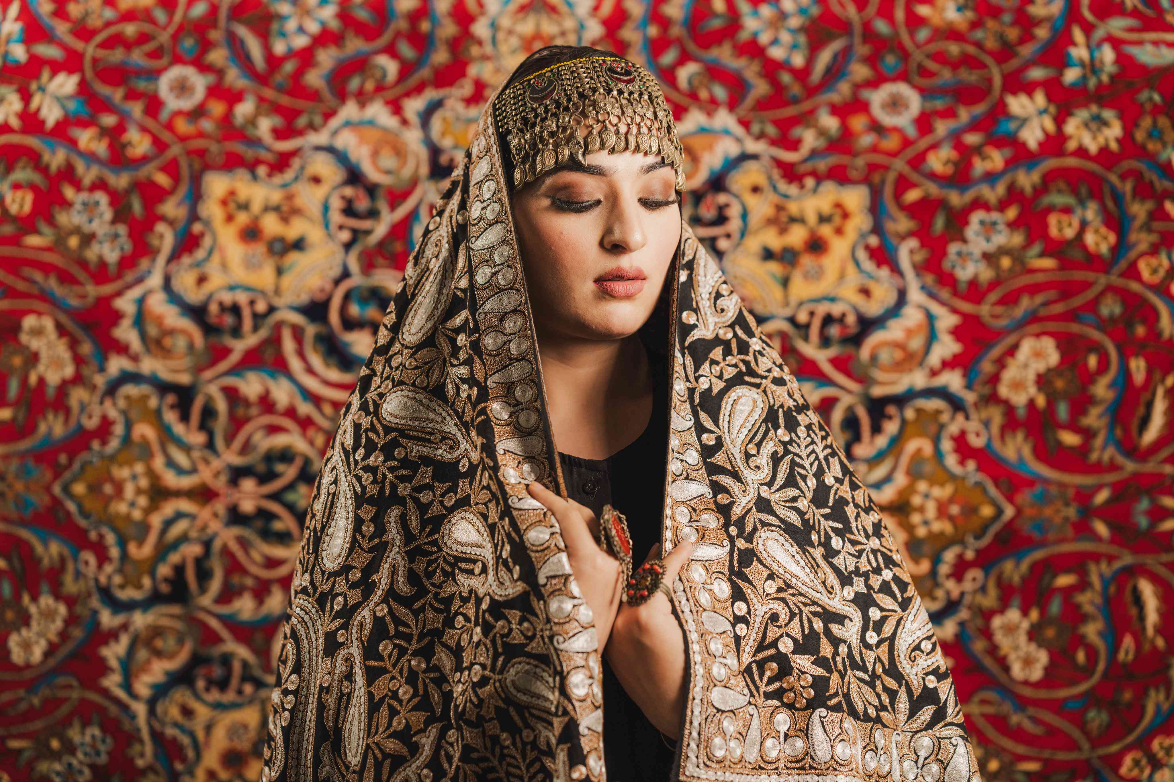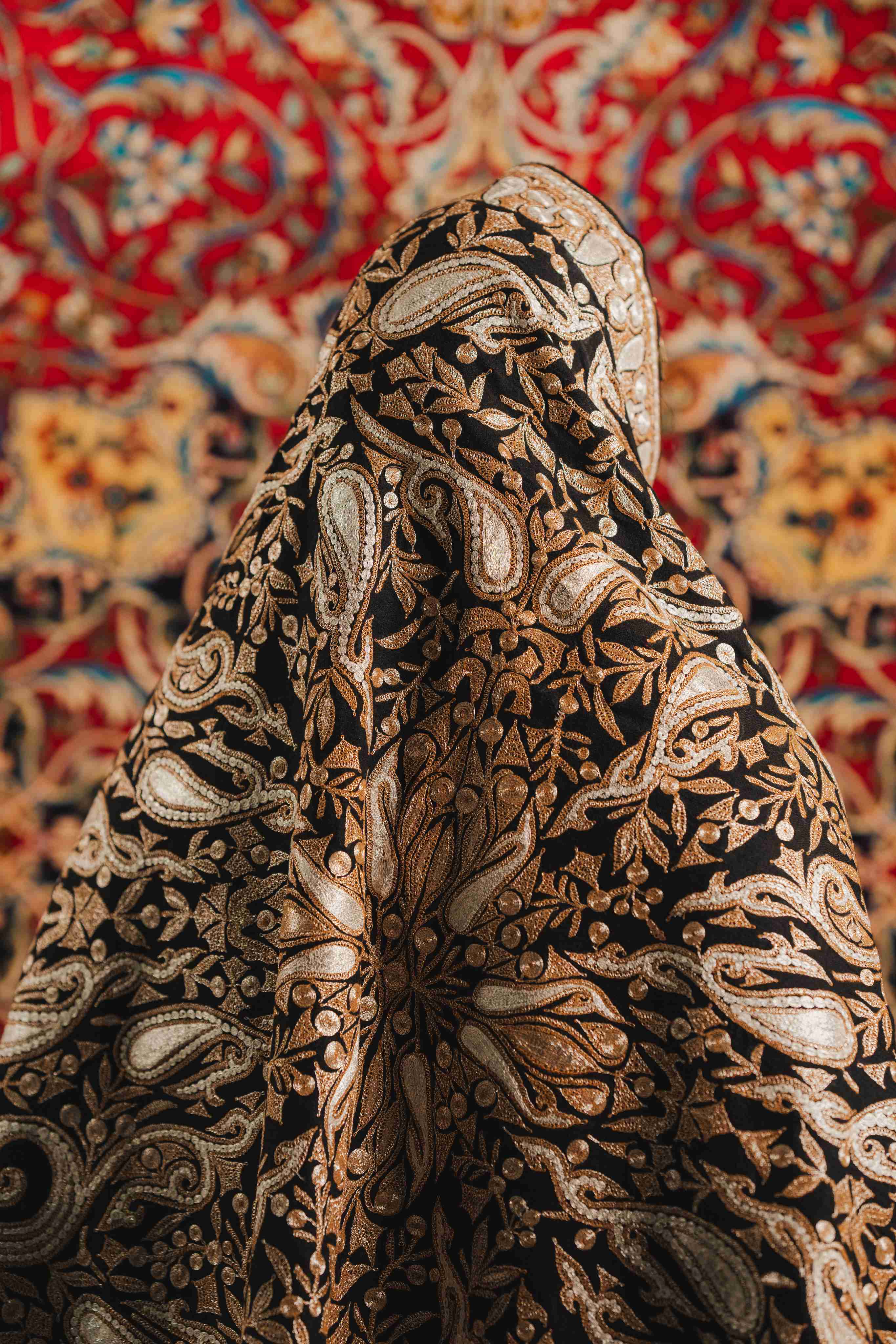 Crafted over eight months with fearless precision, our Black Tilla Pashmina Shawl ignites with original silver metallic threads woven into daring Kashmiri Tilla embroidery. This handwoven marvel dazzles with bold, intricate patterns that rewrite the rules of luxury. Make a powerful statement of heritage and elegance with a shawl designed to seize every gaze and celebrate the extraordinary.