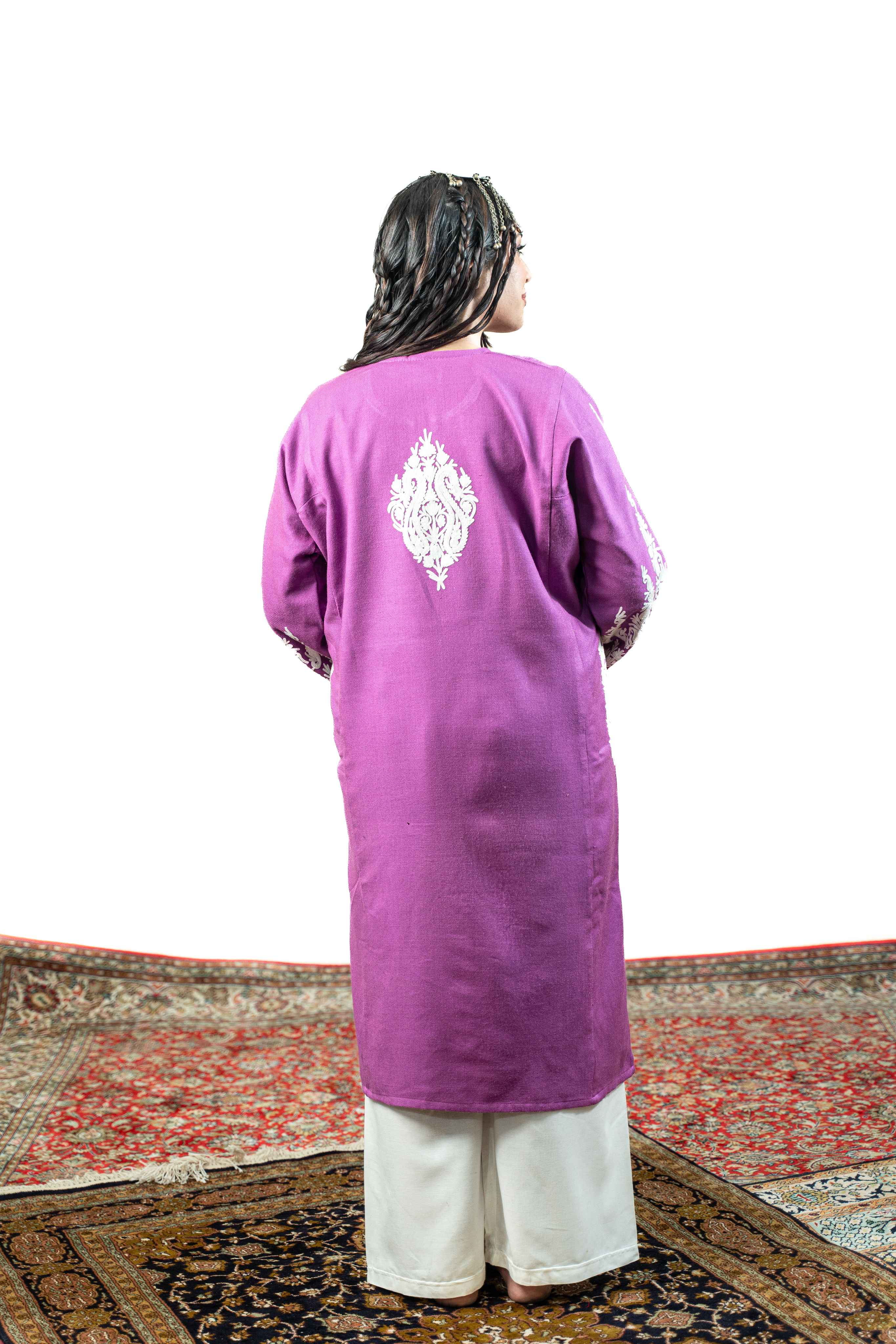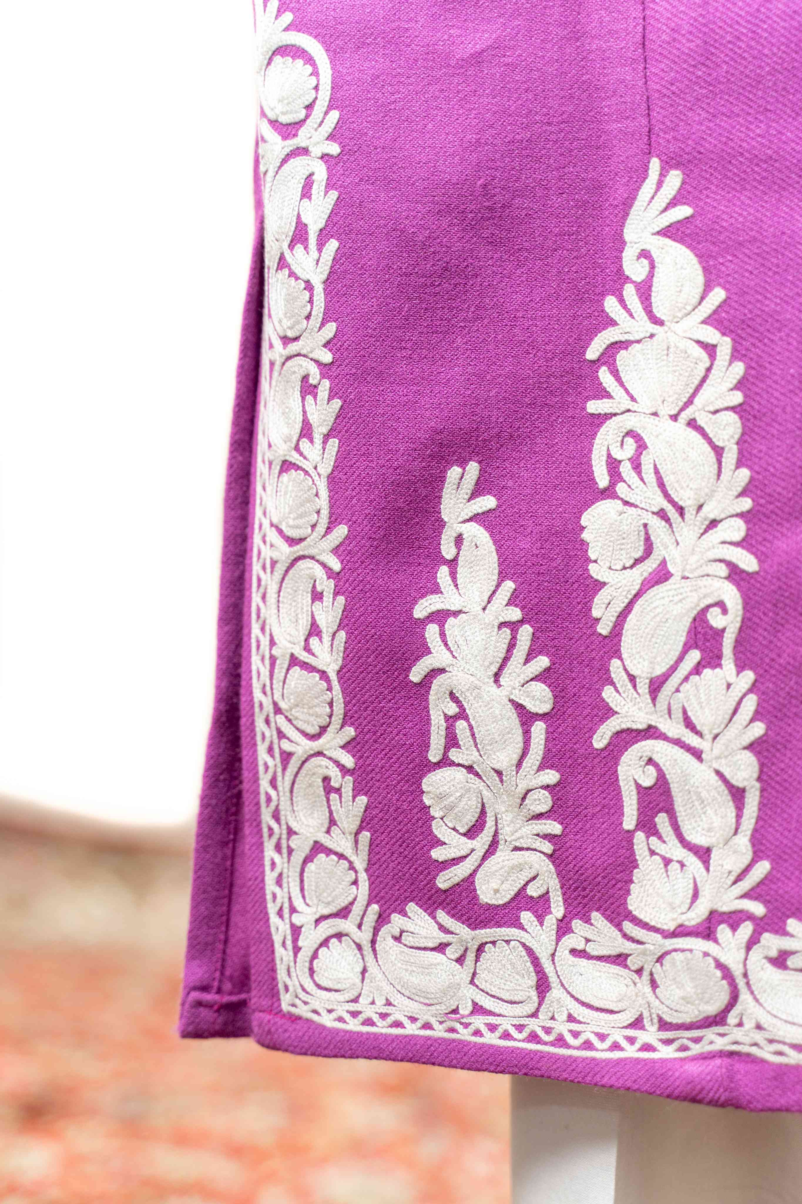 Bold. Audacious. Unforgettable. This Mystic Purple Aari Work Pheran demands attention with its striking violet palette and fearless embroidery. Hand-crafted with meticulous aari work, every thread tells a story of Kashmiri artistry pushed to its limits. This isn't just traditional wear—it's a statement for those brave enough to stand out. Wear it when you're ready to turn heads and challenge conventions. For the daring soul who refuses to blend in.