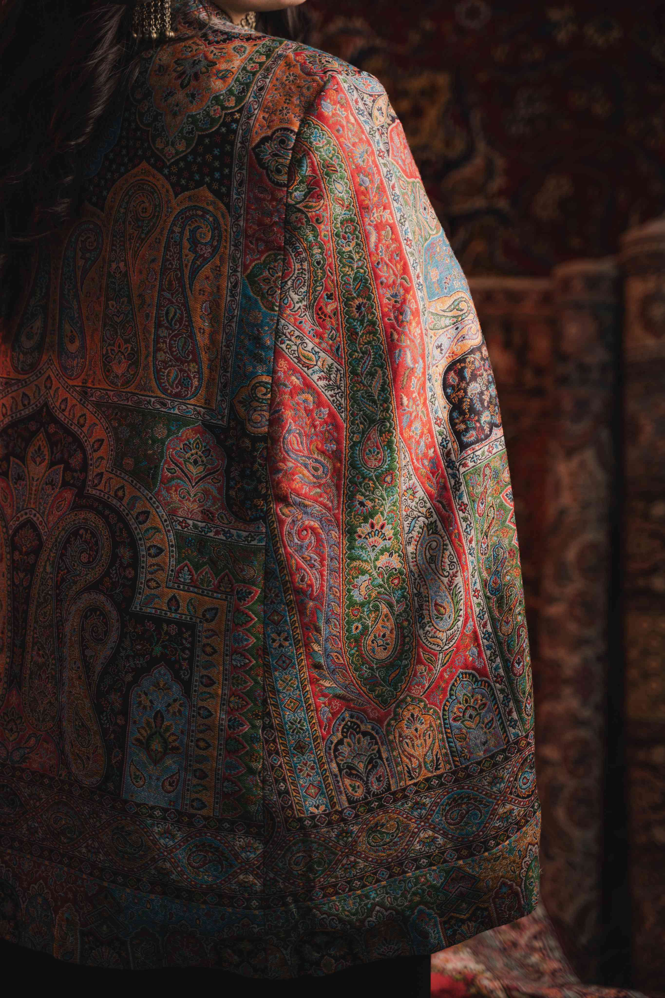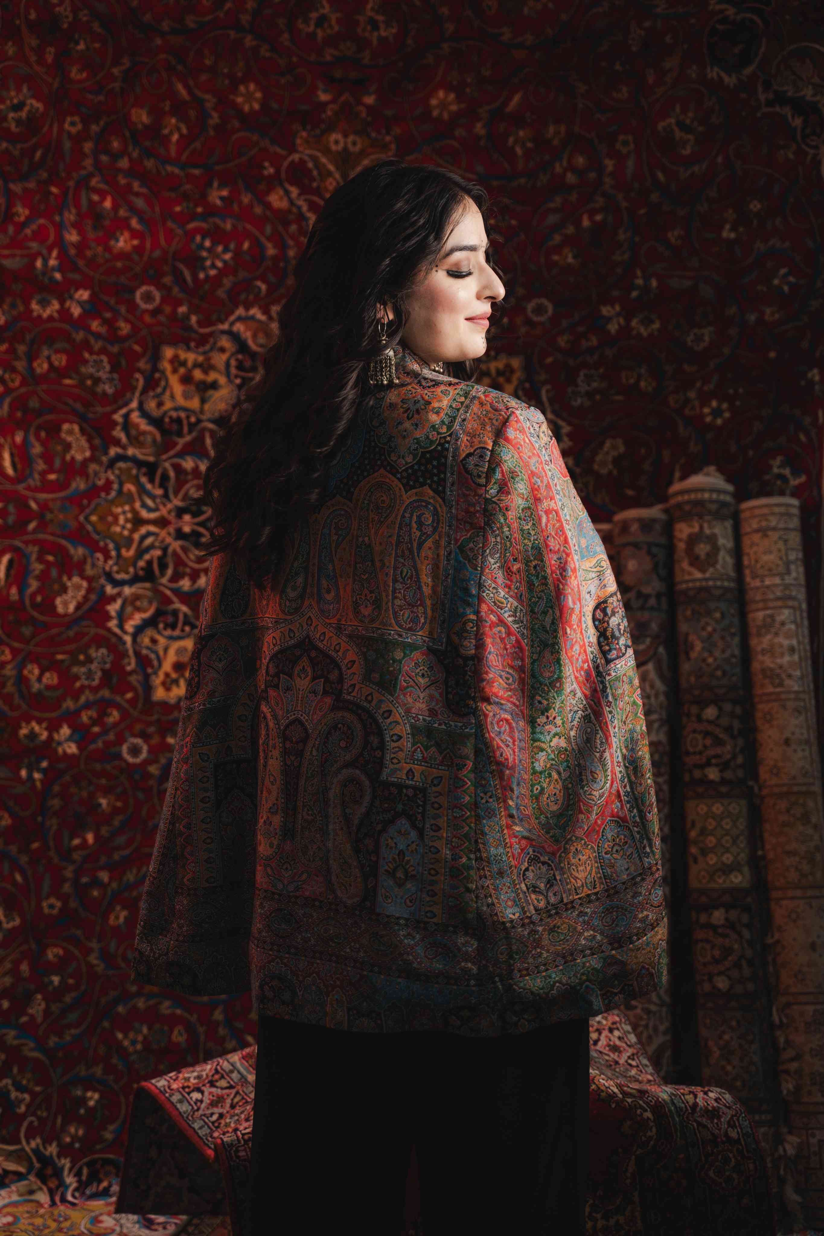 Kashmiri Kani Work Cape Coat - Multi Colour