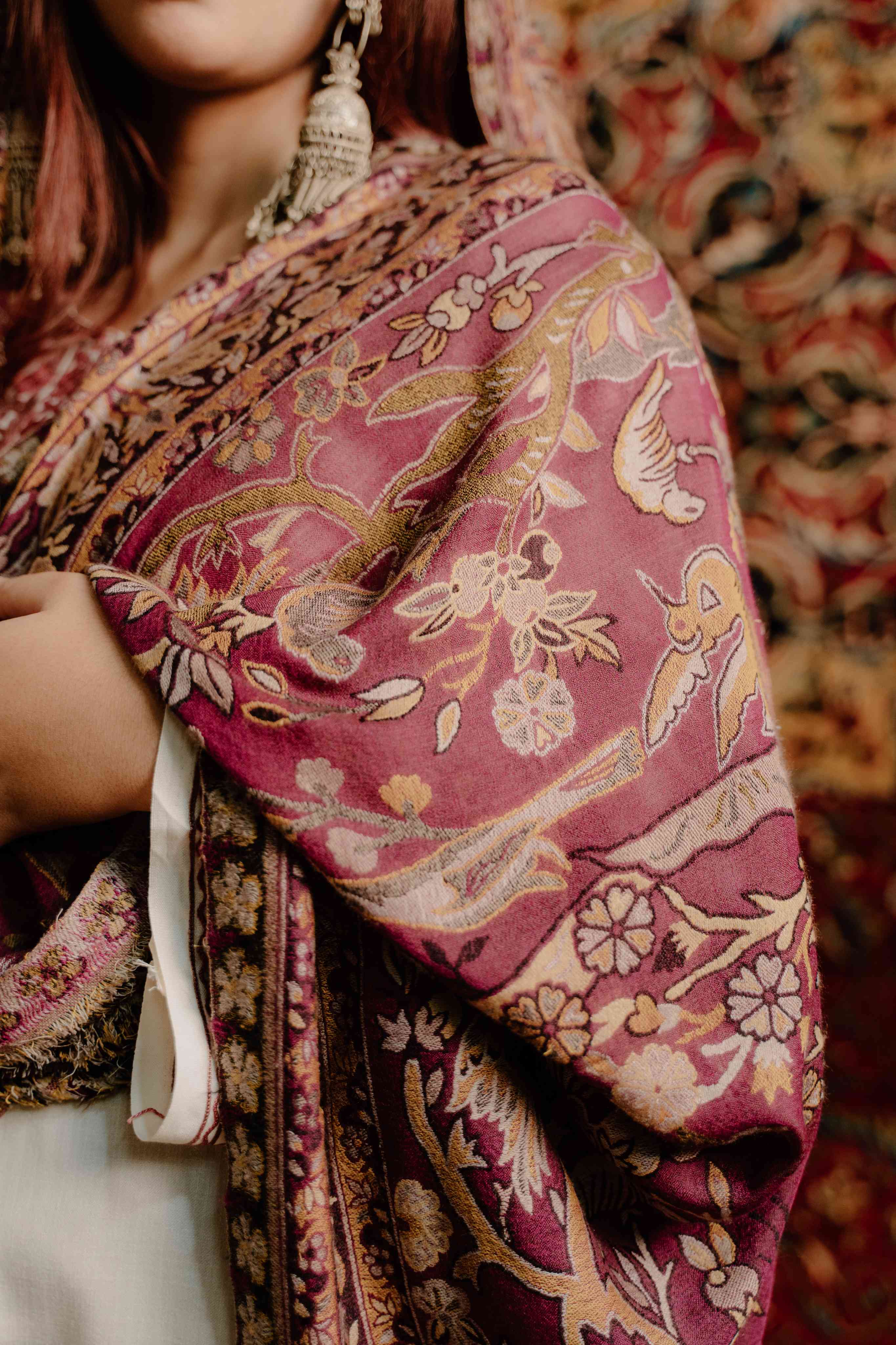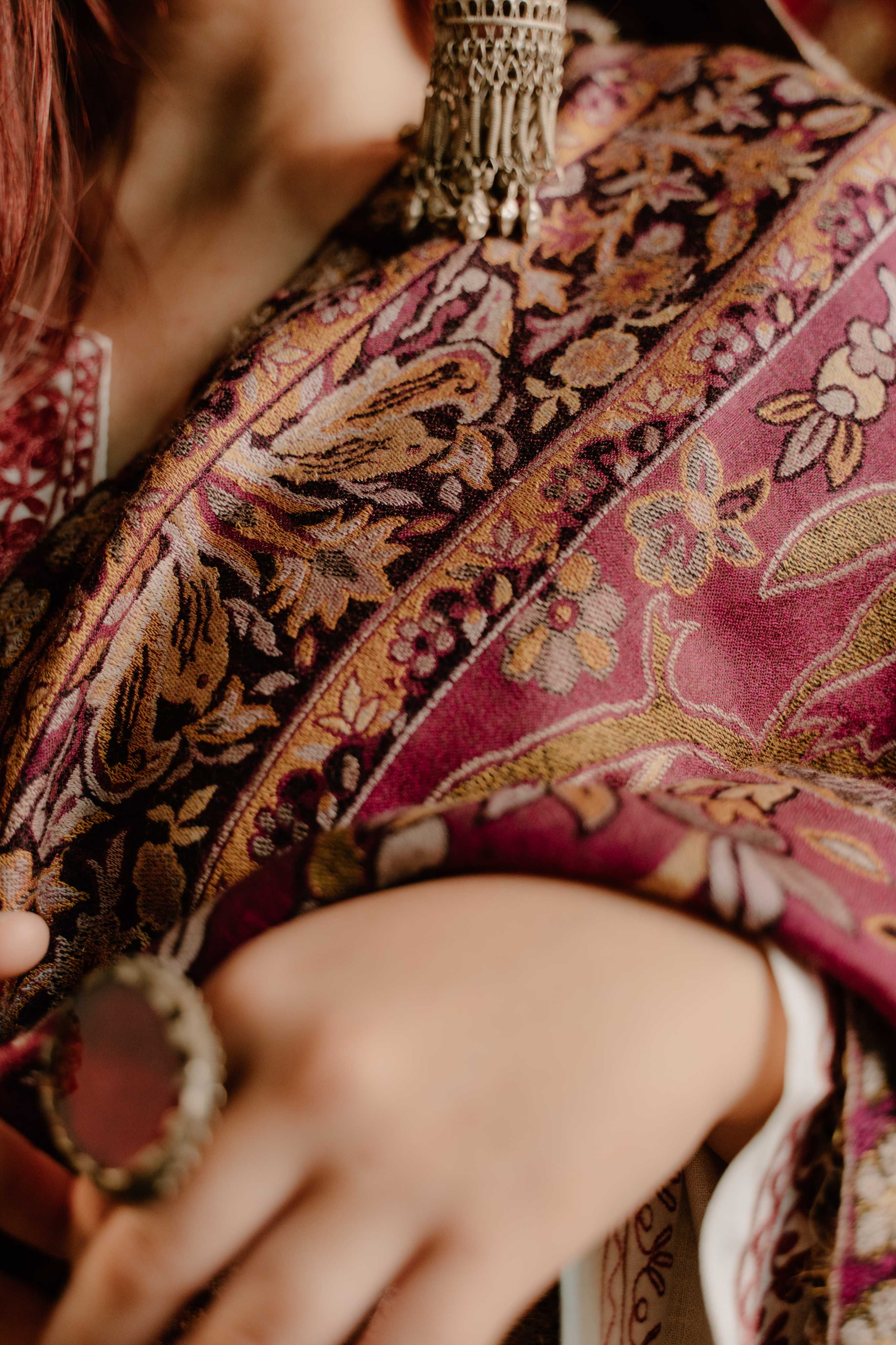 Kashmiri Kani Shawl - Maroon | Soft Wool
