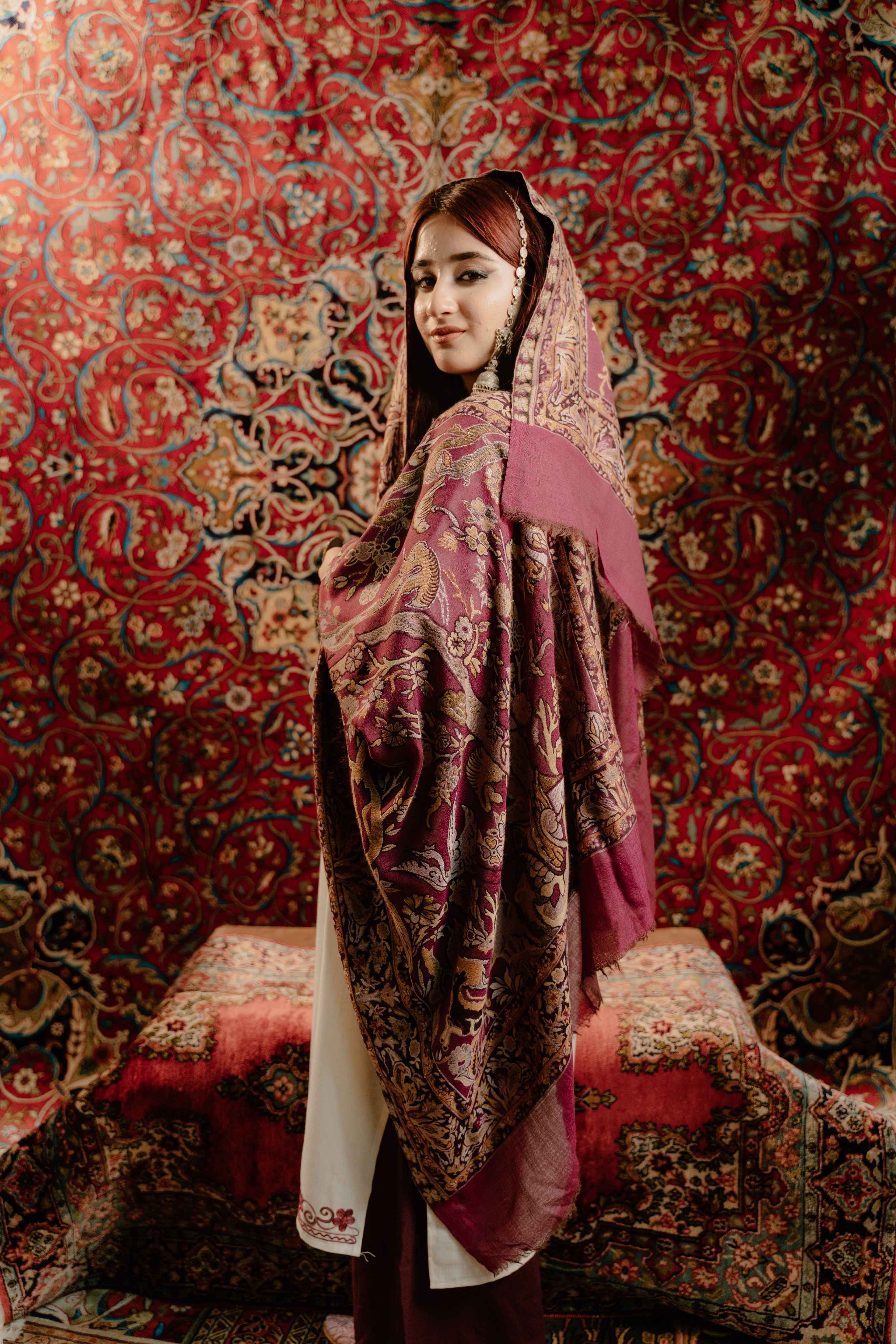 Unleash your adventurous spirit with KANI SHIKAR GAH SUPER FINE SHAWL MAROON! Made of super soft wool, it keeps you warm without any itching. Its lightweight design is perfect for all your daring endeavors. Take on any challenge in style!